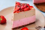 Sernik truskawkowo-czekoladowy bez pieczenia 5413Jeśli nie przygotowujecie sernika na jakąś specjalną okazję, dobrym rozwiązaniem jest dekorowanie tylko podawanego kawałka ciasta. Sernik truskawkowo-czekoladowy bez pieczenia Składniki: spód 90g herbatników pełnoziarnistych lub innych (około 10 sztuk) 20g czekolady deserowej 30-40g masła masa truskawkowa 700g twarogu sernikowego 250g truskawek 100g czekolady mlecznej 3 łyżki cukru 3 łyżki żelatyny 6 łyżek wody 0,5 opakowania