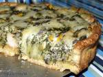 Tarta szpinakowa z kurczakiem i pieczarkami 290ciasta podczas pieczenia. Aby ranty ciasta nie przypaliły się przy pieczeniu, boki formy zasłonić folią aluminiową, tak aby tylko dół się swobodnie piekł. Podpiec ok 15-20 minut w 200C w nagrzanym wcześniej piekarniku - opcja góra-dół, środkowy poziom piekarnika, bez termoobiegu. Koniecznie potem wystudzić - w ten sposób spód nie namoknie od nałożonej masy . Cebula, czosnek, pieczarki, szpinak i kukurydza