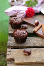 Babeczki orzechowe z kremem czekoladowym 256bardzo puszystą i jasną masę. Do utartego masła dodawać jajka, jedno po drugim, miksując po każdym dodaniu do dokładnego połączenia. Dodać mleko i ekstrakt z wanilii, zmiksować. Dodać suche składniki i wymieszać szpatułką lub łyżką, tylko do połączenia. Na koniec dodać posiekaną czekoladę, krótko wymieszać. Przygotować standardową blachę do muffinek - wyłożyć ją papilotkami. Ciastem napełnić papilotki prawie do samych