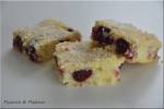 Deser z wiśniami 134zdecydowałam się zrobić właśnie to ciasto. Okazało się bardzo proste i bardzo dobre. Składniki: wiśnie świeże lub z kompotu wydrylowane 25 dag twarogu 3 jajka 150 ml śmietany 10 czubatych łyżek kaszy mannej 4 łyżki miękkiego masła otarta skórka z jednej cytryny 1 łyżka cukru pudru sól Wykonanie: Jajka rozdzielić. Masło utrzeć na puszystą masę, dodać żółtka, cukier, skórkę