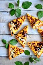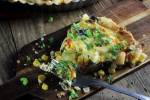 CHRUPIĄCA TARTA SEROWA Z KURCZAKIEM I KUKURYDZĄ + KONKURS 219Wykładamy ciastem francuskim , nakłuwamy na spodzie i podpiekamy w nagrzanym do 190C piekarniku przez 5 minut. Na patelni rozgrzewamy odrobinę masła, dodajemy posiekaną cebulę oraz czosnek, oczyszczonego i pokrojonego w kosteczkę kurczaka, przesmażamy, wrzucamy paprykę oraz kukurydzę – mieszamy. Jajka roztrzepujemy ze śmietaną, dodajemy starty ser i doprawiamy do smaku. Na podpieczony spód wyciągamy farsz z kukurydzy , zalewamy masą serowo