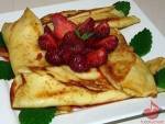 Naleśniki z serem i truskawkami 162Takie naleśniki najlepiej smakują o tej porze roku w sezonie truskawkowym. Składniki na 20 naleśników: • olej do smażenia naleśników • masło do odsmażenia naleśników • truskawki Ciasto • 2 szklanki mleka • 1 szklanka gorącej wody • 1/2 łyżeczki soli • 3 jajka • 2 szklanki mąki • 2 łyżki oleju Ser • 500 g sera półtłustego • 2 żółtka • 3 czubate łyżki cukru pudru(...)cukier waniliowy • 4 łyżki rodzynek Wykonanie: • Mleko wymieszać z wodą, dodać jajka i roztrzepać trzepaczką. • Dodać mąkę, sól i olej, i również roztrzepać. • Odstawić masę na 30 minut, aż mąka się rozklei. • Usmażyć ok. 20 naleśników, smarując patelnię pędzlem z olejem. • Żółtka utrzeć w misce z cukrem pudrem i waniliowym. • Dodać