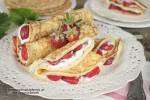 naleśniki z serkiem i truskawkami 288wlewamy ciasto i smażymy cienkie naleśniczki na jasny kolor. Na następne naleśniki nie dodajemy oleju na patelnię. składniki na farsz z serka i truskawek: ok. 300 g białego serka śmietankowego 2 – 3 łyżki cukru do smaku 300 g truskawek bez szypułek opcjonalnie: cukier waniliowy do smaku cukier puder do posypania wykonanie: Serek miksujemy z cukrem na gładką masę. Truskawki