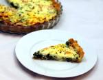 Tarta z łososiem i szpinakiem 292Ciasto przykryć folią aluminiową i odstawić na godzinę do lodówki. Po tym czasie nagrzać piekarnik do 190°C. Ciasto rozwałkować podsypując mąką i wyłożyć w formie wysmarowanej masłem. Na cieście ułożyć folię aluminiową oraz obciążenie (mogą to być specjalne kulki do tarty lub np. fasola). Piec 15 minut, a następnie zdjąć folię z obciążeniem i piec jeszcze ok. 10 minut(...)całkowitego odparowania wody. Mascarpone wymieszać z jogurtem i większością parmezanu (ok. 15 g zostawić na posypanie wierzchu). Na podpieczonym spodzie rozłożyć szpinak, a następnie łyżką wyłożyć 2/3 masy serowej. Delikatnie rozprowadzić łyżką. Masa jest dość gęstą. Na wierzchu ułożyć plastry łososia (delikatnie rwać je ręką na mniejsze kawałki). Całość przykryć pozostałą częścią masy serowej. Wierzch wyrównać łyżką i posypać parmezanem