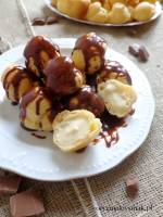 Profiterole z kremem pâtissière, bitą śmietaną i sosem czekoladowym 231Profiterole to malutkie ptysie wypełnione dowolnym kremem. Nadzienie może być słodkie lub wytrawne. Moje są z kremem pâtissière wymieszanym z bita śmietaną i polane sosem czekoladowym