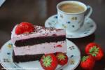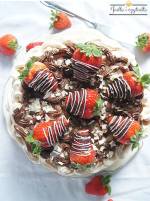 Tort bezowy z kremem czekoladowym i truskawkami 229Przygotowując bezy z kremami śmietanowymi należy je spożyć zaraz po przygotowaniu, ponieważ beza się rozpuści, natomiast krem na bazie masła i czekolady sprawi, że taki tort