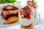 Deser z mascarpone, biszkoptami i truskawkami + film 296Deser z mascarpone, biszkoptami i truskawkami to pyszny, warstwowy przysmak łączący w sobie serek mascarpone, bitą śmietanę, kruche biszkopty oraz lekko kwaskowate truskawki. Wszystkie składniki deseru