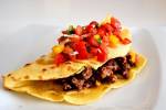 Meksykańskie tacos con carne 289łyżki oliwy i 150 ml wody. Całość dokładnie wyrobiłem uzyskując gładkie ciasto, które następnie zawinąłem w folię plastikową i odłożyłem na pół godziny do lodówki. Po tym czasie ciasto podzieliłem na 8 równych części. Każdą z części cienko rozwałkowałem starając się uzyskać jak najbardziej okrągły kształt placków, a następnie smażyłem placki na płaskiej, mocno rozgrzanej patelni bez użycia tłuszczu(...)średni ząbek czosnku i 1/3 pęczka świeżej natki kolendry. Całość doprawiłem niewielką ilością soli i czarnym świeżo mielonym pieprzem. Następnie dolałem 4 łyżki oliwy i całość zmiksowałem na gładką masę, którą odstawiłem do lodówki w celu połączenia się smaków. Następnie przygotowałem salsę pomidorową. Jedną szalotkę posiekałem w dość drobną kostkę. 3 pomidory obrałem, pokroiłem w cząstki i pozbawiłem gniazd nasiennych