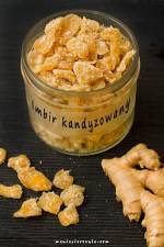 Domowy kandyzowany imbir 274postanowiłam zrobić kandyzowany imbir sama. Przepis nie jest skomplikowany i pozwala uzyskać dużą ilość wybornego, domowego, kandyzowanego imbiru bez żadnych ulepszaczy! Możecie go bardzo długo przechowywać, stosować do wszelkich ciast, ciasteczek, lodów czy też po prostu jako dodatek do herbaty. Nie zapominajcie o jego leczniczych właściwościach! Świetnie sprawdzi się jako naturalne cukierki na kaszel lub antidotum na chorobę lokomocyjną. Polecam(...)dodać do imbiru. Wymieszać. Postawić na palniku. Zagotować, mieszając od czasu do czasu. Cukier roztopi się. Zmniejszyć ogień, gotować 20 - 25 min, aż cukier zacznie się krystalizować - masa lekko zgęstnieje i powstanie syrop cukrowy. Każdy kawałeczek imbiru będzie oblepiony syropem. Na ściankach garnka, jak widać na zdjęciu, pojawi się cukrowy nalot to znak, że najwyższa pora wyjąć imbir