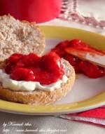 Truskawko, co by tu... DŻEM TRUSKAWKOWY. 243całe 5 czubatych po brzegi łubianek pięknych, dużych i czerwonych owoców, w sumie jakieś 10 kilogramów. I wywiązał się problem. Co ja mam z nimi zrobić? Galaretki, deserki, ciasta... A co z resztą? No, yyy... Część poszła na nalewkę/likier. Większość z tych całych trzech potężnych porcji zamroziłam, dzięki czemu moja zamrażarka praktycznie nic, prócz truskawek, nie kryje. A może(...)rozpadły. Wsypałam zawartość opakowań "żel-fructów" i porządnie wymieszałam. Gotowałam ok. 10 minut, zdjęłam z ognia i mieszałam jeszcze 2 minuty, do częściowego zaniku piany. Resztę piany zebrałam. * Gorącą masą wypełniłam słoiczki, uprzednio dobrze umyte i wyparzone. Zakręcałam wieczko, po czym odstawiałam zamknięte dżemiki do góry dnem. W tym stanie zostawiłam je do całkowitego wystudzenia. * Kiedyś wyczytałam, że piana przyspiesza