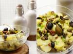 Sałatka ziemniaczana z filecikami anchois i zielonym winegretem 327ziemniakach piszę do znudzenia? Może, ale to dla mnie najbardziej wszechstronne warzywo na świecie. Nie ma drugiego takiego, które można przerobić na chipsy, frytki, wódkę, kotlety, sałatki, purée , pasty, ciasta. Gotować, smażyć i piec na milion sposobów. Naprawdę, jak można ich nie kochać? Obok tej sałatki nikt nie przejdzie obojętnie. Wszystkie składniki sosu blendujemy ze sobą przez około półtorej minuty(...)częścią oliwek, szczypioru, kaparów i posiekanych filecików anchois. Znowu kilka łyżeczek sosu, ziemniaki, kapary, szczypior, oliwki… i tak do wykończenia składników. Tak połączona sałatka nie jest jednolitą masą, wygląda bardziej elegancko. Wierzch ozdobiłam filecikiem, kaparem i oliwką. Wstawiamy salaterkę do lodówki i zostawiamy na przynajmniej 6 godzin, do pełnego połączenia smaków. Tak przyrządzone ziemniaki podjemy po delikatnym ogrzaniu