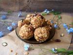 Miodowe kulki mocy 219mojej miłości do zdrowych słodkości najczęściej sięgam po ciastka, ciasta i babeczki, od czasu do czasu tworzę jeszcze różne wersje serników na zimno, a przecież można jeszcze tak wiele inny rzeczy zrobić, zwłaszcza teraz kiedy robi się coraz cieplej i nie chce się włączać piekarnika. Zainspirowana instagramowymi zdjęciami przygotowałam "kulki mocy" pełne ziaren i bakalii osłodzone oryginalnym Miodem Manuka, który(...)najmniej pół godziny, a następnie blendujemy razem z wodą, w której się moczyły, wsypujemy płatki owsiane, mąkę kokosową, ulubione bakalie, rozpuszczony olej kokosowy i miód, mieszamy całość dokładnie. Masa powinna byc gęsta ale lepka, formujemy z niej kulki (można sobie pomóc łyżką do lodów), które odstawiamy na kilka godzin do lodówki i pyszny zdrowy deser gotowy
