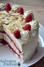 Tort Malinowa Rozkosz 9204Tort Malinowa Rozkosz – to tort wzorowany na moim pomyśle na ciasto na herbatnikach, na które przepis znajdziecie tutaj: Malinowa rozkosz – ciasto bez pieczenia . Pewnie ten tort by nie powstał, gdyby nie pytanie jednej z moich czytelniczek, Aleksandry :) Ola właśnie zapytała o wykorzystanie kremu do stworzenia tortu, więc stwierdziłam, że to może być super pomysł i warto taki malinowy(...)soku wyciśniętego z cytryny 1 łyżka cukru Składniki na frużelinę malinową: 800g mrożonych malin 100ml syropu malinowego 2 bardzo czubate łyżki mąki ziemniaczanej (lub nieco więcej jeśli masa jest zbyt rzadka) Składniki na krem: 1000ml śmietanki kremówki 36% 500g serka mascarpone 6-7 łyżek cukru pudru 2 opak. cukru wanilinowego Dodatkowe składniki: garść płatków migdałów świeże maliny do ozdoby *szklanka