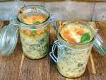 Wtorek: Wegetariańska lasagna w słoiku 251lasagnię użyliśmy kokardek. Jest z nimi mniej zachodu niż z płatami i są tańsze. Jeśli macie więcej czasu i lubicie robić sami makaron polecamy Wam następujący patent: z płata ciasta makaronowego wycinamy krążki o średnicy słoika i układamy w słoiku przekładając warstwami nadzienia. Efekt wizualny i smakowy wspaniały. Przepis wzorowany na bbcgoodfood.com Składniki: 2 garści makaronu kokardki 2 duże garści(...)oliwy Sok z cytryny (według uznania) Sól i pieprz do smaku Przygotowanie: Włóż bazylię, posiekany ząbek czosnku, orzechy i parmezan do miski miksera i zmiksuj całość na dość gładką masę, wlewając stopniowo oliwę. Dopraw sokiem z cytryny pieprzem i ewentualnie solą. Artykuł Wtorek: Wegetariańska lasagna w słoiku pochodzi z serwisu Niedzielny kucharz