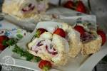 Rolada bezowa z owocami 234Już dawno nie jadłam aż takiej bomby kalorycznej, ale uwierzcie mi, że warto było zgrzeszyć :) Z wierzchu chrupiąca, w środku piankowa, a do tego mnóstwo owoców