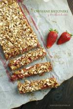 Owsiane batoniki z truskawkami – zdrowe i pyszne 917Owsianka – śniadaniowy klasyk. Po wersji do picia, znów jej odmieniona odsłona – pieczona i do tego mobilna wersja owsianki. Owsiane batoniki z truskawkami możemy zabrać
