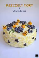 Pszczeli tort z jagodami 265Tort ten powstał na bardzo specjalne zamówienie. Dwuletnia już jubilatka, dla której był robiony zażyczyła sobie, by był niebieski i miał pszczoły. Jego wizja kształtowała się
