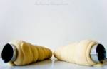 Chaos i róg obfitości. Bread cones. 187początku był Chaos, czyli otchłań wypełniona bezkształtną masą, mieszaniną powietrza, ziemi, wody i ognia. Z tej masy (...) wyłoniła się najpierw bogini GAJA (Ziemia), a potem bóg URANOS (Niebo). Uranos spoglądał z wysokości na Ziemię i polewał żyznym deszczem doliny, ona zaś rodziła trawy, drzewa, kwiaty, zwierzęta i ptaki. (...) Pojawiło się również blade słońce i zaświeciły dalekie gwiazdy. Uranos(...)cone s , czyli bułki, które nazwałam rożkami obfitości. Jak widzicie po słodkich i chrupiących rurkach Brandy Snaps (klik) , wciąż mam ochotę na "nawijanie":) . Ogromnie spodobał mi się pomysł owinięcia ciasta wokół foremki do rurek i upieczenia rożków, które można nadziać czym tylko mamy ochotę. Bread cones idealnie nadają się na karnawałowe przyjęcia - jeśli przygotujecie kilka rodzajów past lub sałatek