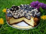 Sernik chałwowy 236dodać 100 g masła pokrojonego na kawałki i rozpuścić ale nie gotować,zdjąć z ognia i dodać 3 łyżki kakao, dokładnie i energicznie wymieszać do uzyskania jednolitej masy, lekko przestudzić i polać ciasto