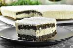 Markos 410porannej kawy. SKŁADNIKI: Biszkopt ciemny: 4 jajka, 1/2 szklanki cukru, 1 szklanka mąki, 2 łyżki kakao, 6 łyżek oleju, 2,5 łyżeczki proszku do pieczenia, 1/2 łyżki octu, Ciasto makowo-kokosowe: 4 białka, 1/3 szklanki cukru, 1/3 szklanki maku, 1/3 szklanki wiórków kokosowych, Masa budyniowa: 250ml mleka, 1 opakowanie budyniu waniliowego, 1 opakowanie cukru waniliowego, 3 łyżki cukru pudru(...)mąkę, kakao, ocet oraz proszek do pieczenia. Ciasto wylewam na blaszkę (wymiary 24x24cm). Piekę 30 minut w temperaturze 170 stopni. Po przestudzeniu ciasto przekrawam na dwa blaty. 2. Ciasto makowo-kokosowe: Białka ubijam na sztywną pianę. Nie przerywając ubijania stopniowo dodję cukier. Następnie dodaję mak oraz wiórki kokosowe. Delikatnie mieszam. Ciasto wykładam na blaszkę i piekę 25 minut w temperaturze
