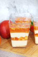 Deser brzoskwiniowy w pucharkach z galaretką 96Przepis na prosty deser brzoskwiniowy w pucharkach! To deser ze świeżymi brzoskwiniami, galaretką i brzoskwiniowym serkiem. Brzoskwiniowy deserek w kubeczkach będzie idealną propozycją na każdą okazję