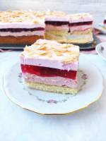 Powiedz dietom nieCiasto Ballerina z galaretką i malinami na biszkopcie Ballerina to pyszne, warstwowe ciasto z galaretką na biszkopcie z malinami, budyniem i malinową pianką . Taka pianka