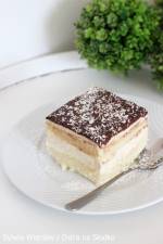 Fitsweet.memasła 82 % (zimne - prosto z lodówki) 100 g cukru pudru szczypta soli 2 żółtka 1 łyżka lodowatej wody opcjonalnie: 1 żółtko (do posmarowania ciasta) Masa kokosowa: 300 ml śmietany 18% 150 g wiórków kokosowych 1 łyżeczka ekstraktu z wanilii 3 łyżki cukru Polewa: 150 g białej czekolady 1 łyżka mleka 1/4 łyżki masła Dodatkowo (do ozdoby): płatki(...)Teraz czas na masę kokosową. Do rondla wlać śmietanę, dodać cukier, ekstrakt i wiórki kokosowe. Całość podgrzać na wolnym ogniu i gotować kilka minut do zgęstnienia. Gorącą masę kokosową wyłożyć na ciasto (fot.3) . W kąpieli wodnej rozpuścić czekoladę z mlekiem i masłem. Gorącą polewę wylać na masę kokosową. Jeżeli polewa za bardzo nam zgęstnieje można dodatkowo dodać odrobinę