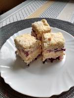 SERNIK NA ZIMNO ŚLIWKOWO KOKOSOWY 244dodatkiem wiórek kokosowych. Masa śliwkowa 20 sztuk śliwek 250 g sera białego 2 łyżki cukru 2 łyżki żelatyny Masa śmietanowa 250 ml śmietany kremówki 3 łyżki wiórków kokosowych 2 łyżki cukru 1 łyżka żelatyny Biszkopt 3 jajka 3 łyżki mąki pszennej 2 łyżki cukru 1 łyżeczka proszku do pieczenia sposób przyrządzenia Biszkopt Oddzielić żółtka od białek. Białka ubić(...)piane z białek i delikatnie wymieszać ale już nie mikserem a łyżką. Ciasto przełożyć dużej prostokątnej blaszki wyłożonej papierem do pieczenie piec w nagrzanym piekarniku ok. 15 min Bita śmietana Żelatynę rozpuścić w ½ szklanki gorącej wody, ubić śmietanę na sztywno, dodać cukier wiórki kokosowe i dokładnie wymieszać cały czas mieszając dodawać żelatynę, dokładnie wymieszać. Odstawić masę śmietanową