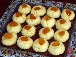 łyżki kwaśnej śmietany 3 jajka 1 łyżeczka proszku do pieczenia Masa kokosowa: 4 białka 1 ½ szklanki cukru pudru 200g kokosu Około 30-40dag połówek orzechów włoskich, migdałów, orzechów laskowych Miękką margarynę ucieramy z cukrem, cukrem waniliowym, śmietaną, jajkami i proszkiem do pieczenia. Na koniec wsypujemy mąkę, wyrabiając ciasto. Masę ciastową wałkujemy na grubość 3-5mm, z której wykrawamy
