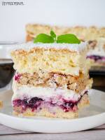 Ciasto kruche z budyniem i kwaśnymi owocami 211którego możecie wykorzystać zamrożone owoce - kruche z masą budyniową oraz śliwkami, porzeczkami, truskawkami oraz wiśniami. Najlepiej wybrać lekko kwaśne owoce, ponieważ świetnie będą smakować ze słodkim kruchym ciastem. Mleczko kokosowe możecie pominąć i zamiast niego wykorzystać mleko krowie. Składniki na formę do pieczenia o wymiarach 20 x 30 cm: kruche ciasto 2 szklanki mąki pszennej (300 g) 1 kostka zimnego(...)kruche ciasto : wszystkie składniki wsypać do miski i za pomocą robota kuchennego zagnieść na jednolitą masę. Gotowe ciasto podzielić na 2 jednakowe części, przełożyć je do woreczka i włożyć do zamrażalnika. Następnie przygotować budyń : 2 szklanki zwykłego mleka i 1 szklankę mleczka kokosowego wlać do rondelka. Zagotować. Proszek budyniowy i cukier (zwykły oraz wanilinowy) rozpuścić w pozostałym mleku. Gdy mleko