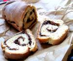 ŚWIĄTECZNA STRUCLA MAKOWA 238ciasto. Odstawiamy je na ok. 1h by wyrosło. Następnie wałkujemy na prostokąt, który smarujemy ubitym białkiem i masą makową.Zwijamy, niezbyt ścisło-> ponieważ masa makowa przebije warstwy ciasta i w makowcu powstanie dziura. Zlepiamy końce, podwijamy je pod spód i wkładamy do długiej foremki keksowej wyłożonej papierem do pieczenia. Wkładamy do piekarnika nagrzanego do 140 stopni i pozwalamy