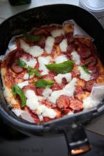 HealthyCreationsPropozycja na weekend, majówkę, imprezę, domowy obiad – nic jej nie przebije! Domowa pizza smakuje najlepiej, z dodatkami rozmaitymi, ulubionymi składnikami lub przyprawami. Ciasto na pizzę z tego przepisu jest bardzo puszyste, miękkie, delikatne. Jest to przepis na dużą pizzę o średnicy 32 cm lub 2 mniejsze, jak wolicie. Z ciasta można uformować kilka kulek i zrobić z nich kilka(...)mini pizz, a każda z innymi dodatkami – będzie pysznie! Pizza pepperoni z papryką i pieczarkami Zasmakuj Kuchni SKŁADNIKI NA CIASTO: 350 g mąki pszennej lub włoskiej typ 00 płaska łyżeczka soli łyżeczka cukru 8 g suchych drożdży 250 ml ciepłej wody 1 łyżka oliwy SKŁADNIKI NA WIERZCH: 1/2 czerwonej papryki 4 małe pieczarki kilka plastrów pepperoni żółty tarty
