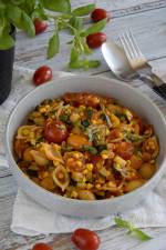 Letni makaron z cukinią, kukurydzą i sosem pomidorowym 7527.08.2025 Magda Czasem najprostsze pomysły okazują się najlepsze – właśnie taki jest ten makaron. Słodycz kukurydzy, delikatność cukinii i soczyste pomidorki tworzą lekkie, kolorowe połączenie, które smakuje