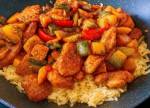 Kurczak duszony z pomidorami serwowany z kaszami 363Dziś zapraszam na szybki, lekki, zdrowy i beztłuszczowy obiad: Kurczak duszony z pomidorami serwowany z kaszami Potrzebne Ci będą: filet z kurczaka pomidory z puszki pieczarki (300 g) cukinia (300 g) czosnek, pieprz,ostra papryka, natka pietruszki po 100 gram kaszy gryczanej i jęczmiennej Mięso pokrój w kostkę, dopraw do smaku czosnkiem, pieprzem i ostrą papryką a następnie podsmaż(...)teflonowej patelni bez tłuszczu razem z pokrojoną w kostkę cukinią i pokrojonymi w plastry pieczarkami. Całość podduś razem z pomidorami z puszki, do miękkości mięsa. Potrawkę podawaj z kaszami - ugotowanymi zgodnie z zaleceniami na opakowaniach