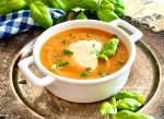 Dwukolorowy krem cukiniowo-pomidorowy 268Idealna letnia zupa, piękny kolor, bajeczny smak cóż chcieć więcej. Ta zupa to połączenie kremu z cukinii i kremu z pomidorów, a wszystko na gęstym wywarze z warzyw, którego podstawowy smak daje zmiksowana włoszczyzna, słodycz z marchewki. Zupa to połączenie słodyczy cukinii, kwaskowatości pomidorów i słonej fety. Po prostu bajka. Zmodyfikowany przeze mnie przepis z książeczki "101 przepisów