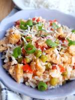 Ryż z kurczakiem 256Ryż z kurczakiem, czerwoną papryką i zielonym groszkiem w aromatycznym sosie z bulionu i śmietanki. Proste, smaczne i kolorowe danie, które podasz na codzienny obiad lub