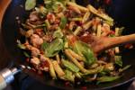 Danie z kuchni karaibskiej wykonane w kilka minut 180Jest to przepis z książki z kuchni karaibskiej. Smacznie i szybko. Fasolkę ugotować w lekko osolonej wodzie, musi być lekko twarda. Odcedzić. Makaron zalać gorącą wodą