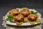Udka faszerowane grzybami z sosem tatarskim 179Jeśli przejadły Ci się klasycznie pieczone udka, wypróbuj ten przepis. Delikatne mięso z udek kurczak o bardzo wyrazistym smaku, faszerowane pieczarkami z sosem tatarskim. Takich udek