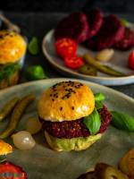 Burgery z buraka 155Coraz rzadziej sięgam po mięso a coraz częściej wymyślam nowe formy klasycznych mięsnych dań, tak jak w tym przypadku. Robiłam już burgerowe kotlety z soczewicy, a