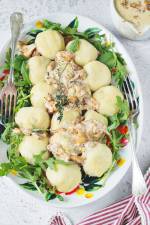 2 obiady z całego kurczaka 185Zapraszam na przepis na knedle. Domowe knedle są najlepsze. Moja mama bardzo często gotowała knedle nadziewane farszem z mięsa rosołowego. Czasami była to wołowina ale również