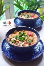 Curry z cukinii i bakłażanów w wersji wegańskiej lub w wersji z indykiem 189Danie jednogarnkowe, o kremowej konsystencji, lekko kokosowe, pełne kolorów, aromatycznych warzyw i składników wzmacniających odporność. Jeśli szukacie pomysłu na niebanalną, rozgrzewającą kolację lub obiad, która oczaruje