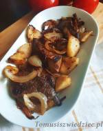 Wątróbka wieprzowa z cebulką i jabłkiem 174Lubię przygotowywać szybkie i proste obiady, które nie wymagają dużo pracy i czasu poświęconego na ich przygotowanie. Jeśli mam możliwość wyjścia rano do sklepu mięsnego to