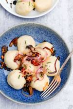 Pora na knedle! 200Dawno nie gotowałam knedli, a to taki pyszne danie na obiad. Domowe knedle z kurczakiem, groszkiem i boczkiem to moja najnowsza wersja tej potrawy. Lubię knedle