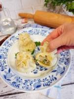 Gruzińskie pierożki Chinkali 220Gruzińska specjalność Pierożki chinkali z mięsem. Pierogi w kształcie sakiewki wypełnione mięsem i bulionem podane z dużą ilością grubo mielonego świeżego pieprzu. ok 20-25