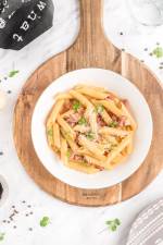 Makaron (penne) carbonara 236Makaron (penne) carbonara – popularny klasyk, często jednak przygotowywany dosyć niepoprawnie bo z dodatekiem śmietany czy cebuli, które w oryginalnej wersji są zupełnie zbędne. Wypróbuj mój