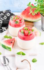 Panna cotta z arbuzową galaretką 138Arbuzy to jedne z moich ulubionych letnich owoców. Zupełnie nie mogę sobie wyobrazić wakacji bez tego charakterystycznego smaku. Myślę że nie jestem jedynym ich wielbicielem, bo