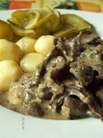 Serca duszone w winie i kluseczki ziemniaczane 2093 serca wieprzowe 1 duża cebula szczypta chili jałowiec kolendra rozmaryn sól pieprz pół szkl wina czerwonego 1 łyżka sosu sojowego 1 łyżka smalcu 3 łyżki