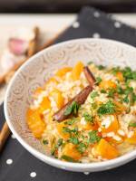 Risotto z dynią 64Risotto z dynią Co prawda sezon na dynię zaczyna się w okolicach lipca, ale nawet teraz, w marcu, jesteśmy w stanie ją kupić w niektórych sklepach