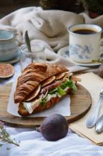 królestwo garówwyjątkowe śniadania właśnie posyłam pomysł na wytrawną wersję croissanta. Przekrojony na pół, został wypełniony puszystym serkiem śmietankowym, pikantną rukolą i charakternym prosciutto o słonych nutach. Do tego plasterki świeżej figi o wspaniałej urodzie i najlepszym smaku o tej porze roku oraz złote krople miodowo-cytrynowego dressingu z pieprzem w zwieńczeniu. Młoda jesień w każdym kęsie maślanego rogalika, a gdzieś(...)inspiracją do tego pysznego śniadania ♥ Kto więc ma ochotę na poranną wycieczkę paryskimi uliczkami, zagryzaną tym wspaniałym croissantem w smakach młodej jesieni? Zakochacie się od pierwszego kęsa! Croissant z figami i prosciutto ilości według uznania Potrzebujesz: świeże croissanty prosciutto serek kanapkowy śmietankowy rukola świeże figi Dressing: 2 łyżki oleju rzepakowego 1/2 łyżeczki łagodnego miodu, płynny 1 łyżeczka soku