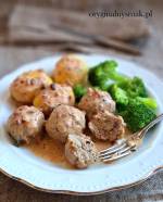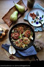 Kotlety mielone w gruszkach z pieczarkami 80Na blogu nie pojawia się wiele mięsnych potraw, bo i w moim menu jest go już trochę mniej, niż kiedyś ale kiedy się pojawia...za każdym